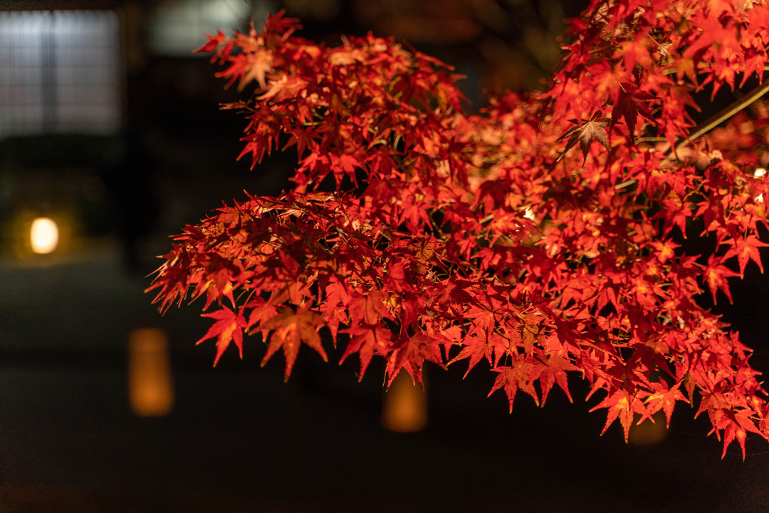 歴史あるお寺に紅葉が彩りを添えて、夜闇に浮かび上がる姿は幻想的!
