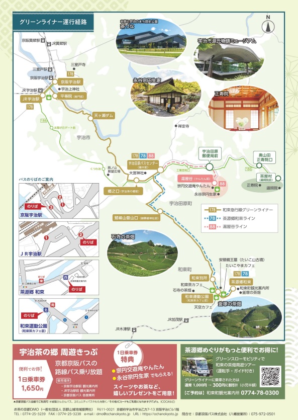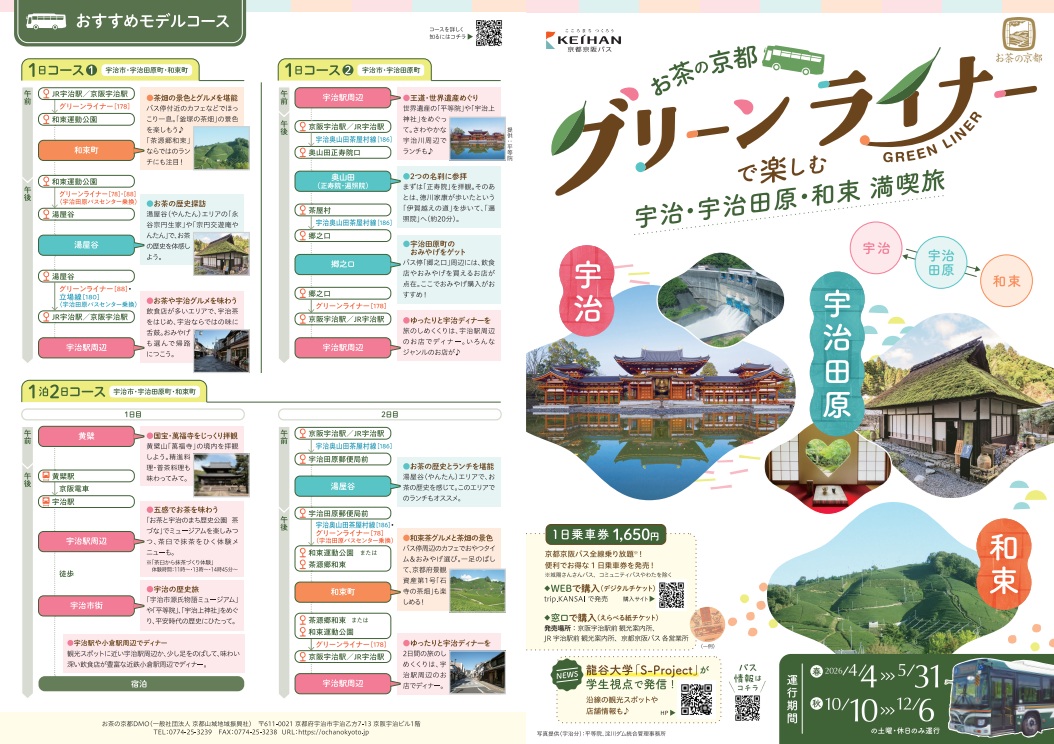 「お茶の京都グリーンライナー」や「宇治奥山田茶屋村線(186系統)」沿線で楽しめるスポットやお店等を紹介したパンフレットを作成しました。