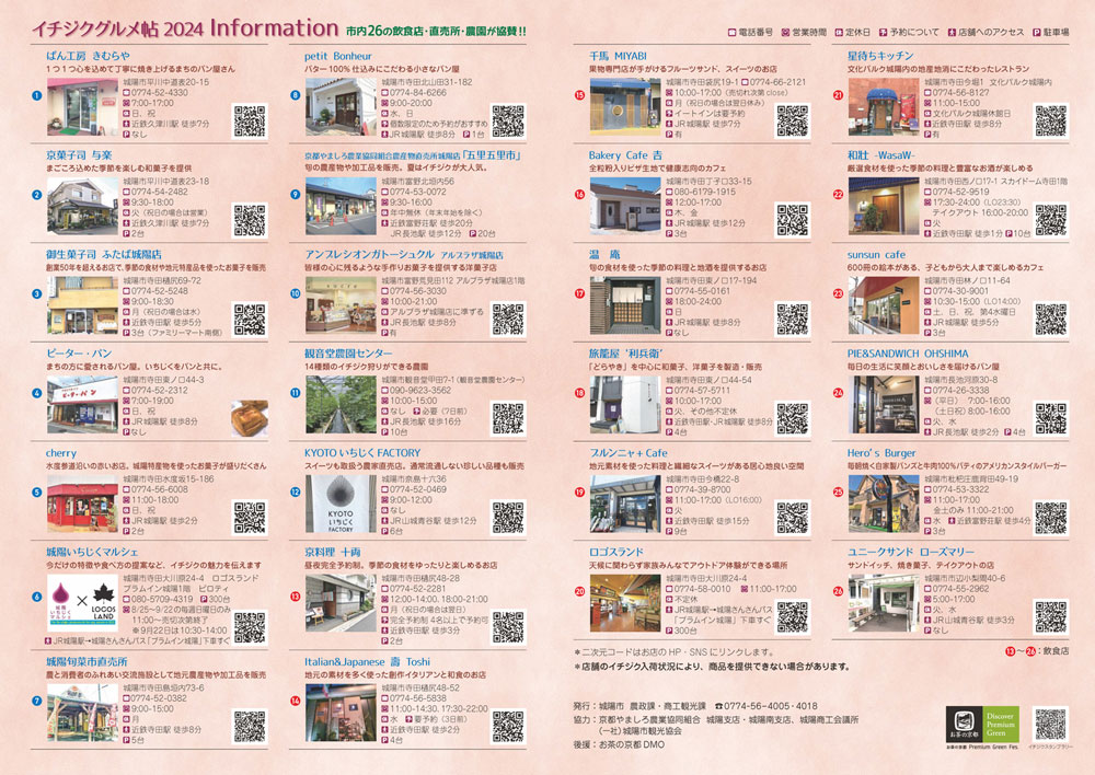※イチジクグルメ帖やスタンプラリーの台紙は、城陽市役所やコミセン、参加店舗等で配布されています。